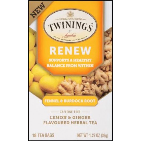 Twinings of London Renew Lemon & Ginger Herbal Tea - Caffeine-Free 18 each